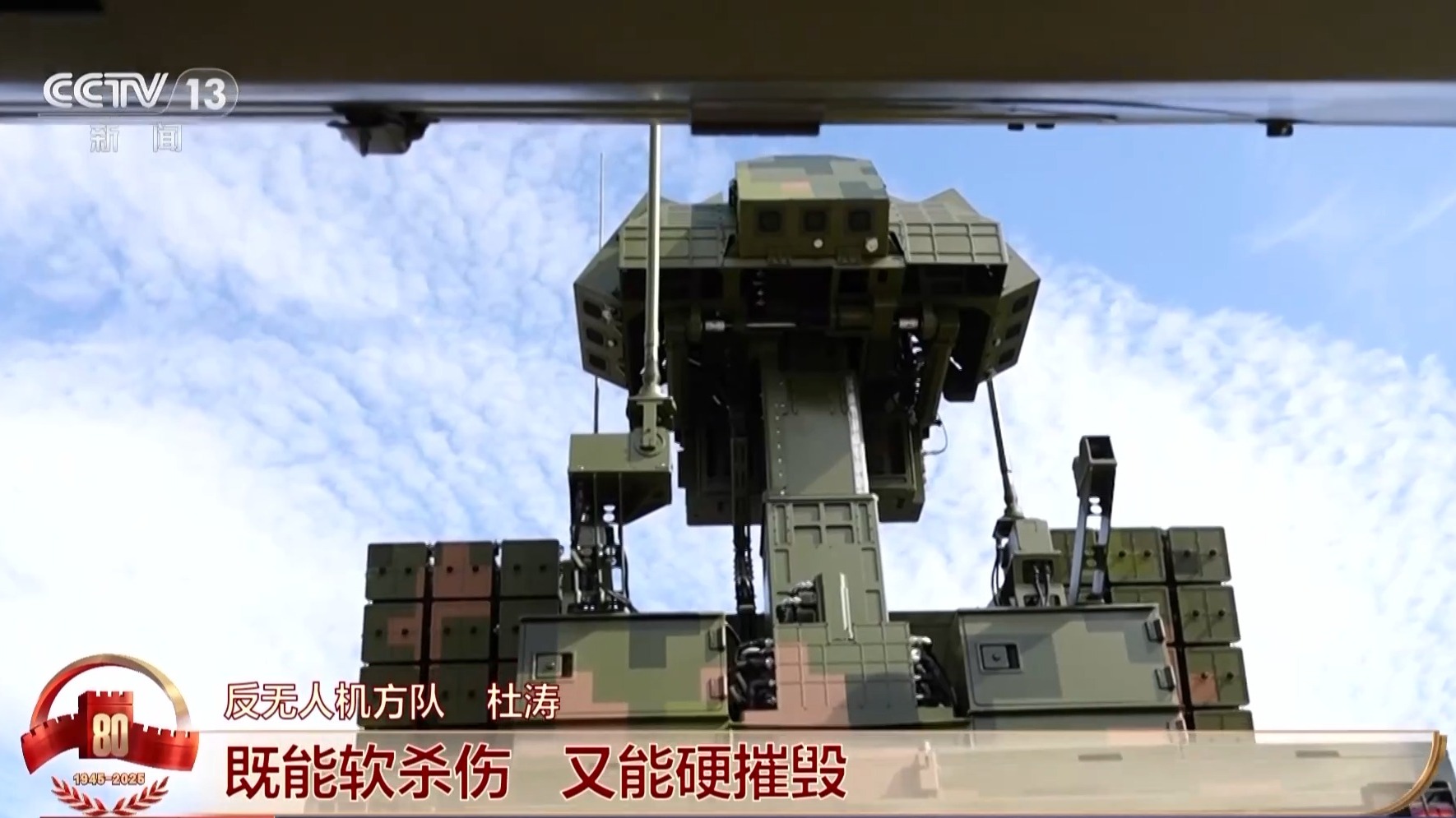 反无人机方队杜涛:它们是基于模块化、开放式结构,有机集成反无弹炮系统、高能激光武器、高功率微波武器等装备,综合运用“弹、炮、光、波”等作战手段,既能软杀伤、又能硬摧毁,号称“铁三角”。